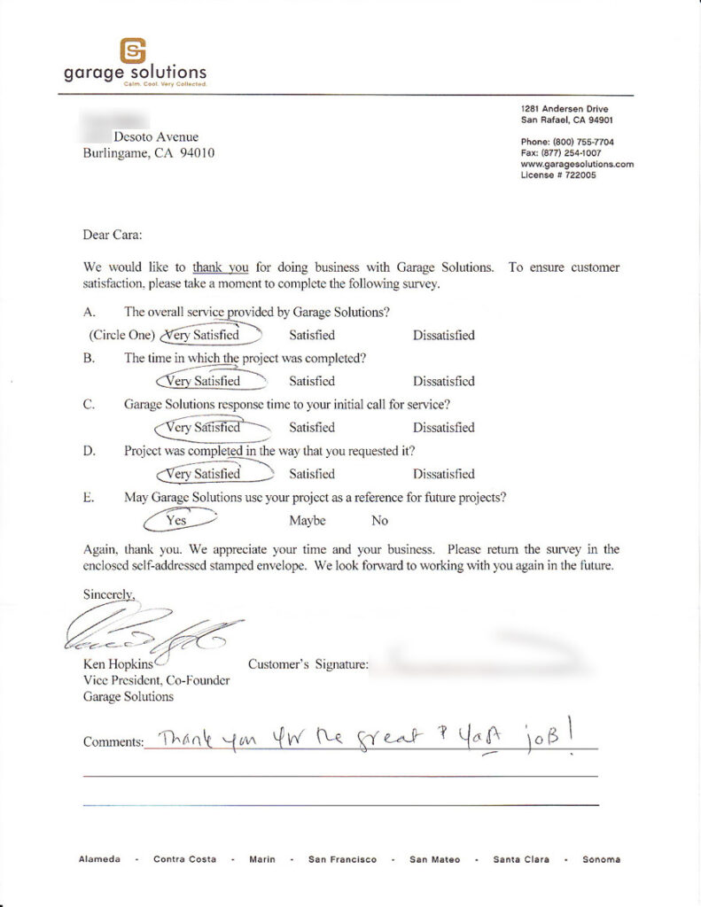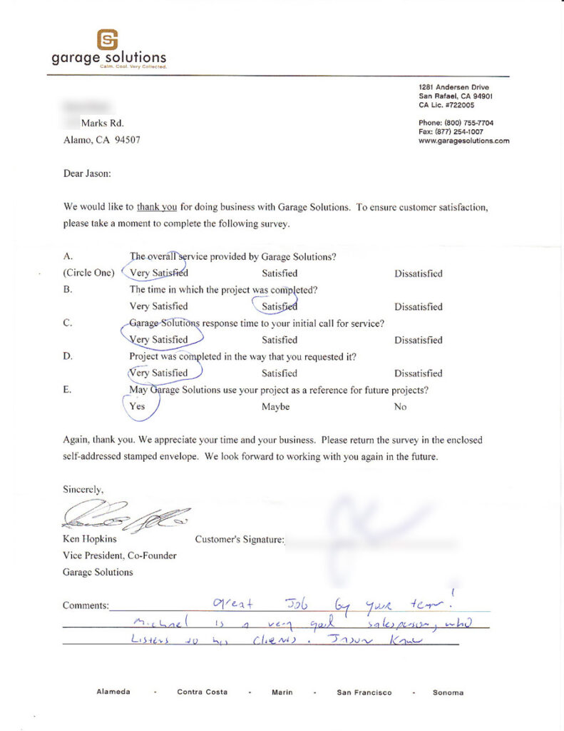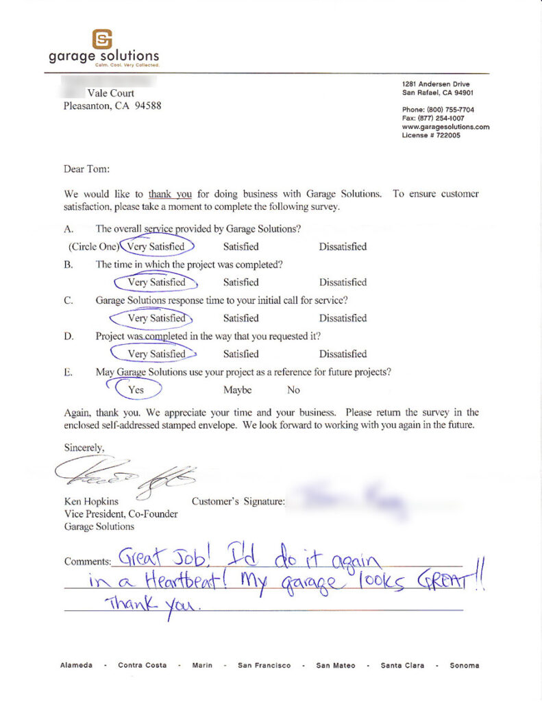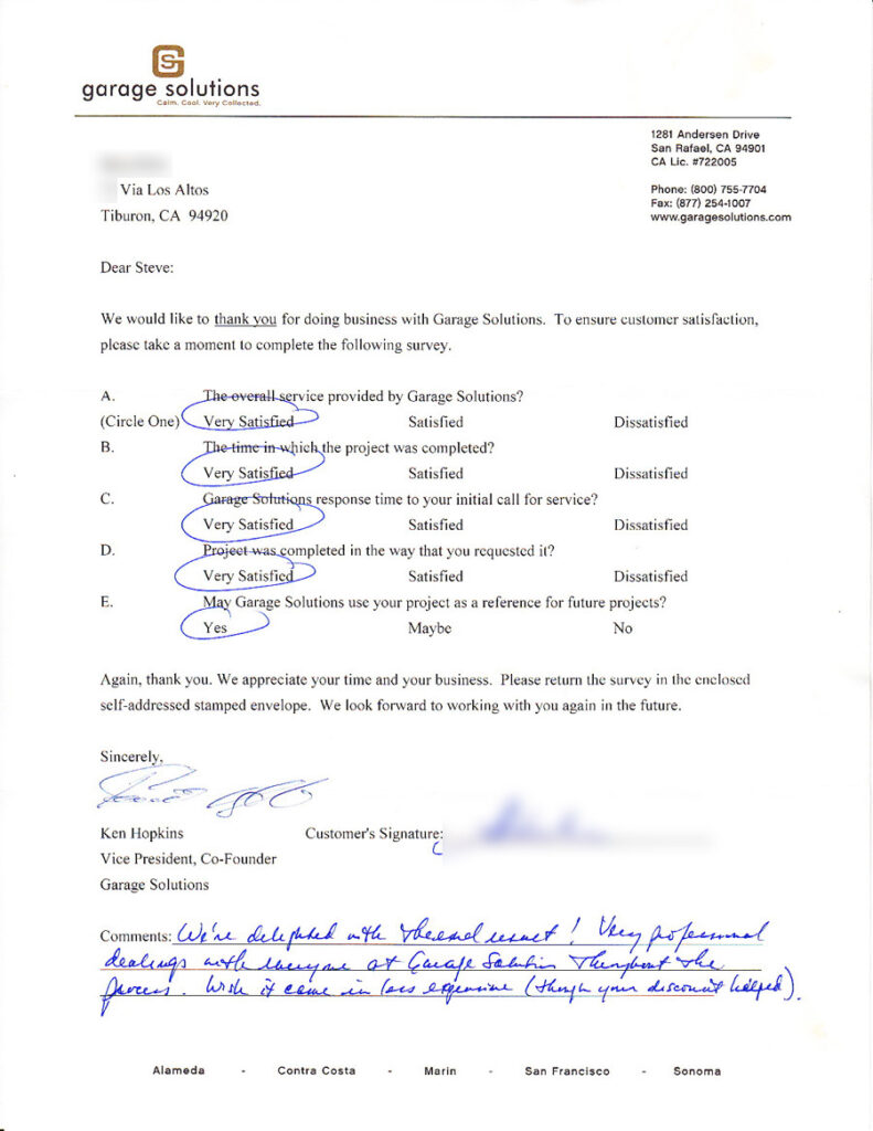 Read MoreHere's a sampling of some of our real customers handwritten experiences with Garage Solutions. (No, we didn't pay for theses - believe it or not)
